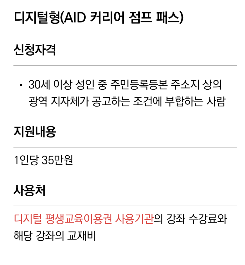 디지털 이용권 대상자: 만 30세 이상, AI·디지털 관련 교육 희망자